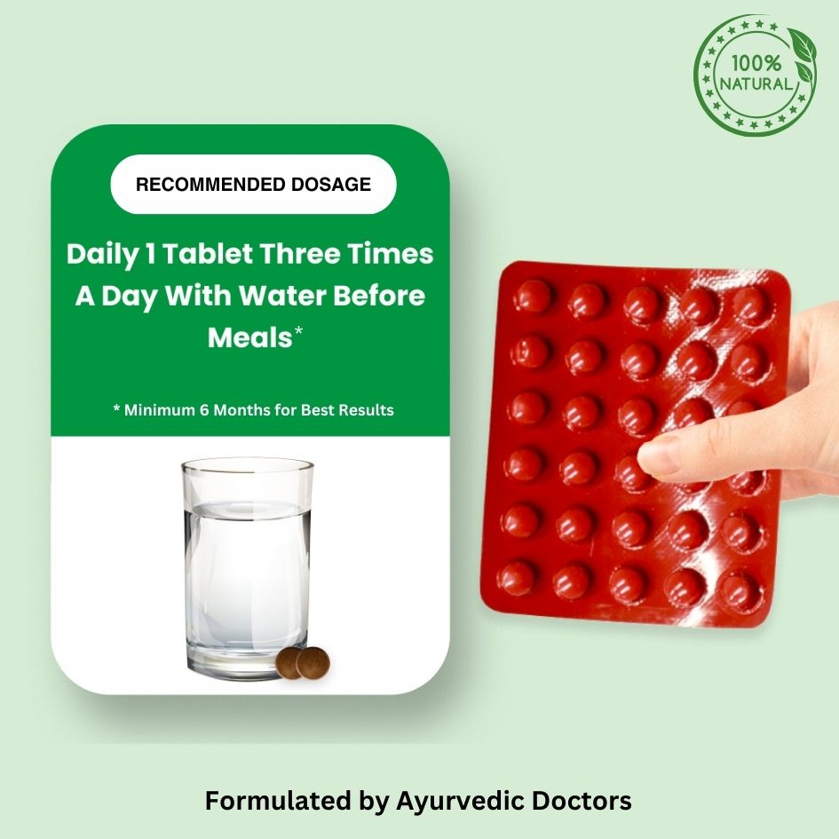 • Daily 1 tablet three times a day with water before meals (18 years & above)